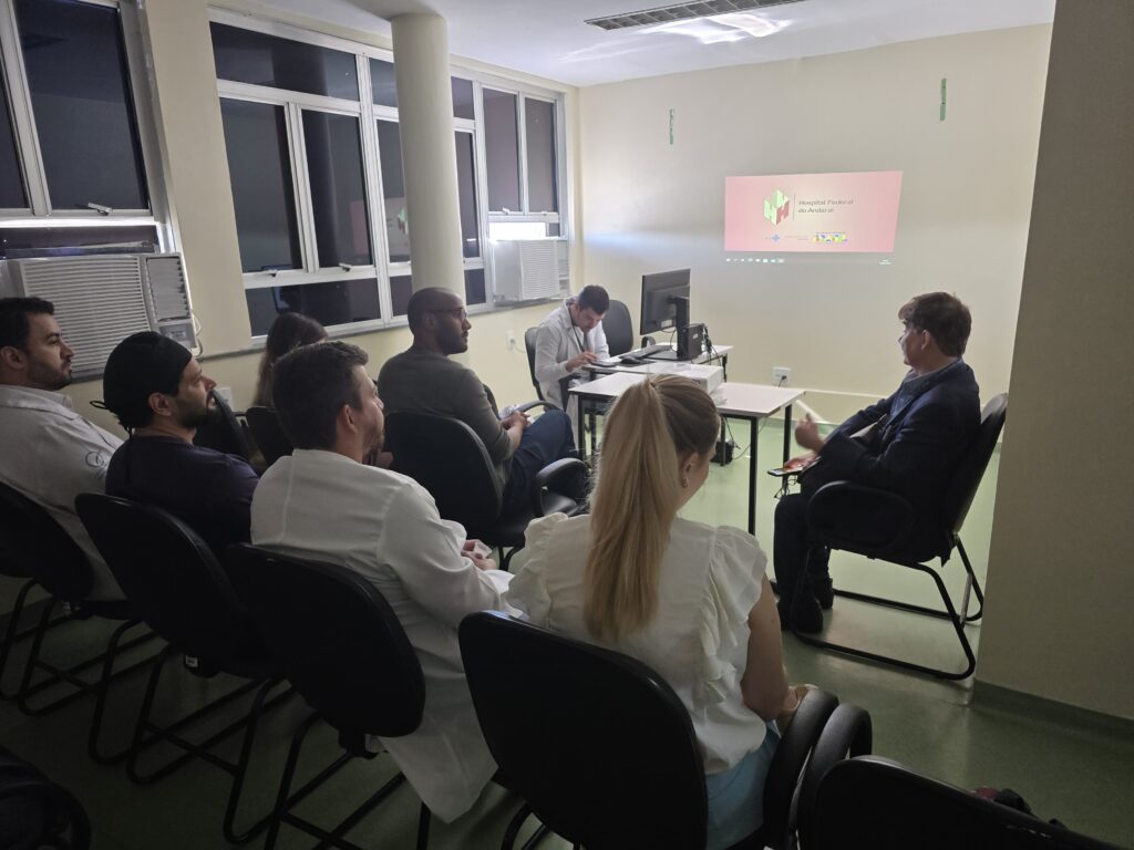 Na manhã desta quarta-feira, 18 de junho de 2025, na Sala Multiuso no 12º andar do Hospital do Andaraí, houve uma reunião com o Dr. Orido Pinheiro, chefe da cirurgia plástica, residentes e estagiários do serviço da plástica. No encontro, apresentaram casos selecionados para discussão, referentes a pacientes operados. Estiveram presentes nove pessoas.