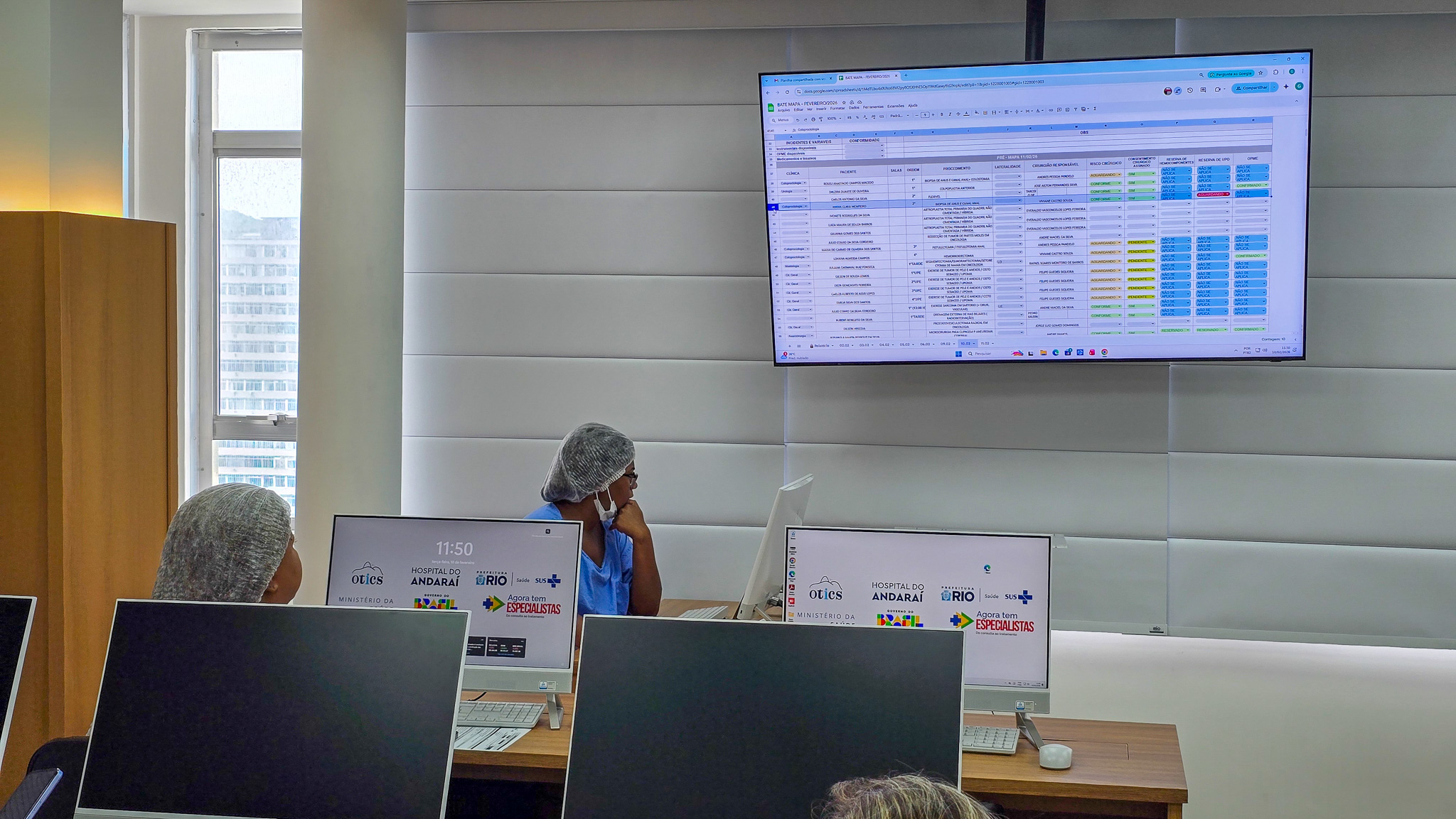 Na manhã desta terça-feira, 10 de fevereiro de 2026, no Laboratório de Informática da Estação OTICS Rio – Andaraí, a Enfermeira Carolina realizou o bate-mapa das Clínicas Cirúrgicas e demais serviços de suporte ao Centro Cirúrgico. A atividade teve como objetivo a organização do mapa cirúrgico para o dia seguinte. Estiveram presentes 13 pessoas.