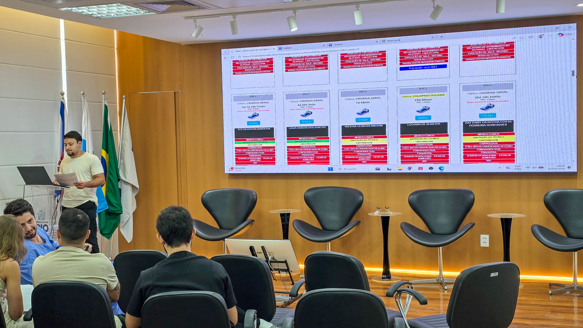 Na manhã desta segunda-feira, 02 de março de 2026, no Auditório – A na Estação OTICS Rio Andaraí, recebeu o evento semanal do Serviço da Cirurgia Geral do Programa de Residência Médica e Internos do HA. Durante o encontro, os residentes apresentam casos médicos selecionados para discussão, referentes aos pacientes no Serviço de Cirurgia Geral. Estiveram presentes 17 pessoas.