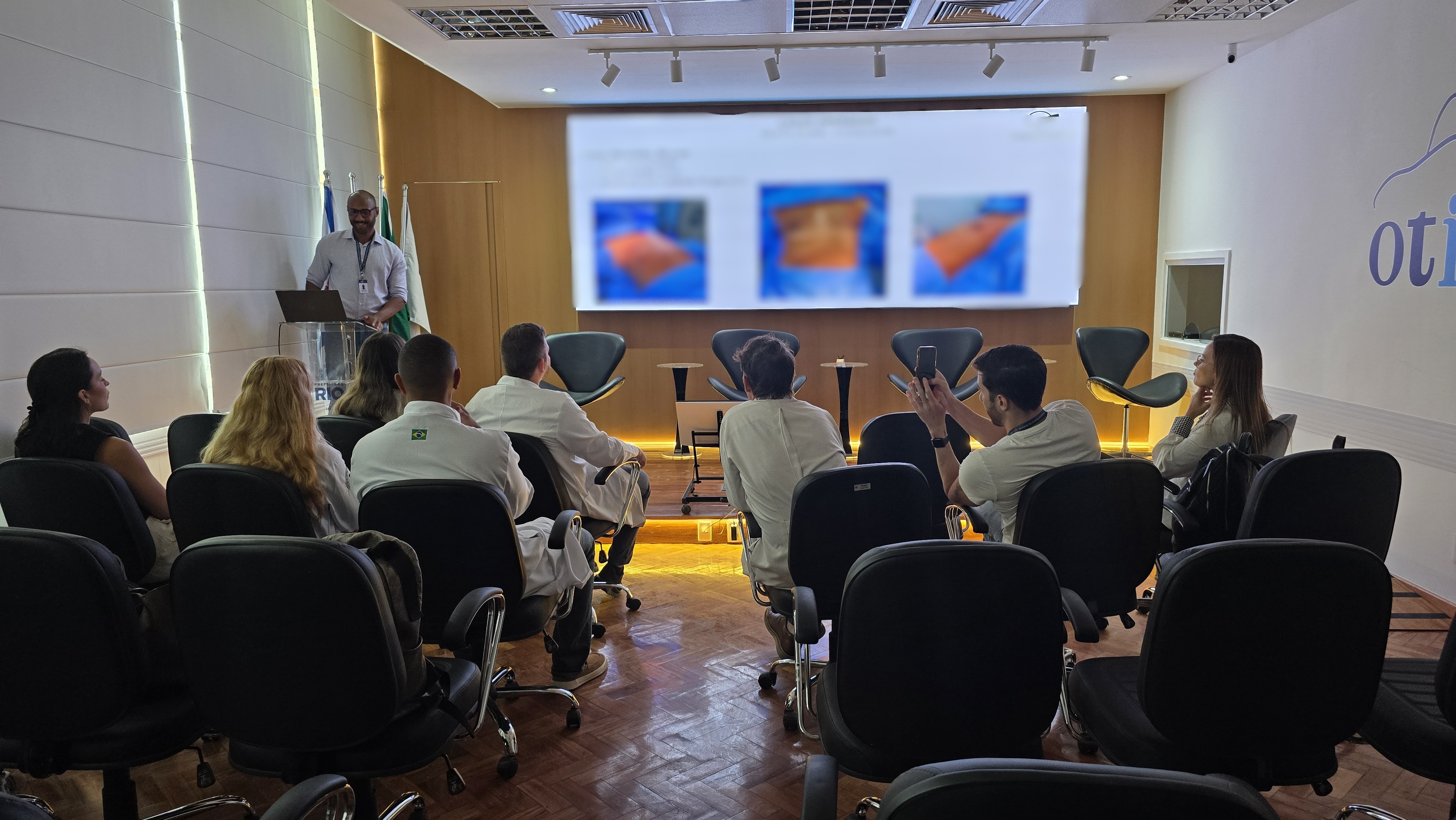 Na manhã desta quarta-feira, 04 de março de 2026, no Auditório – A na Estação OTICS Andaraí, houve uma reunião com o Dr. Orido Pinheiro, chefe da cirurgia plástica, residentes e estagiários do serviço da plástica. No encontro, apresentaram casos selecionados para discussão, referentes a pacientes operados. Estiveram presentes 10 pessoas.