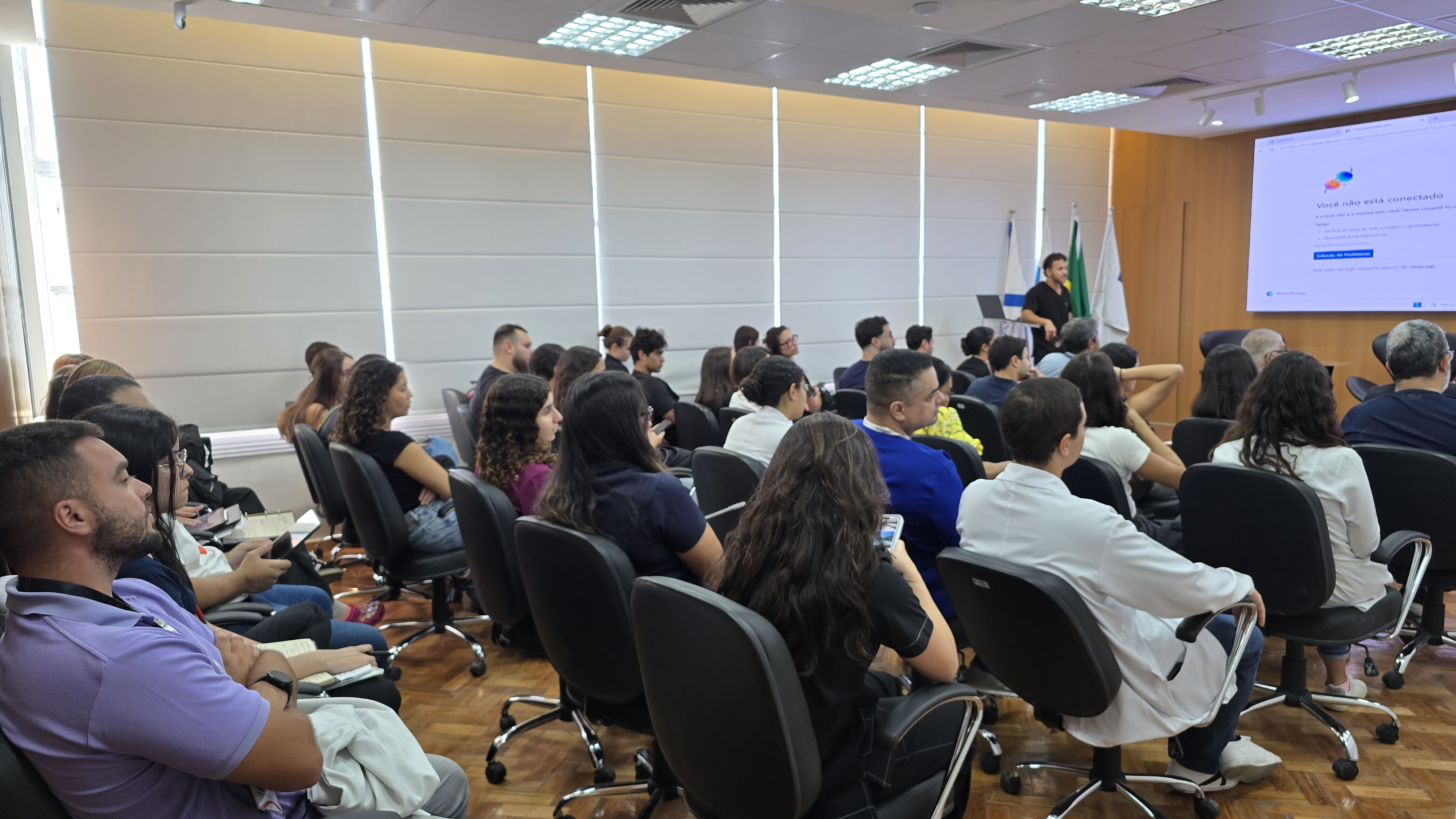 Na manhã desta terça-feira, 17 de março de 2026, o Auditório – 1 da Estação OTICS Rio Andaraí, recebeu o evento semanal do Serviço da Cirurgia Geral do Programa de Residência Médica e Internos do HA. Durante o encontro, os residentes apresentam casos médicos selecionados para discussão, referentes aos pacientes no Serviço de Cirurgia Geral. Estiveram presentes 35 pessoas.