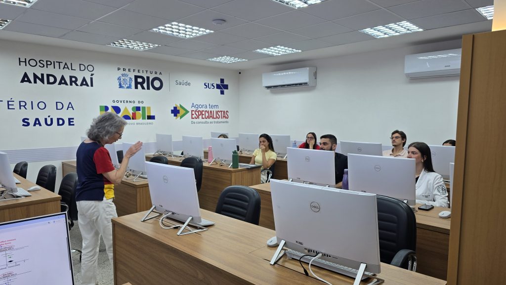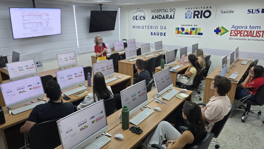 Na tarde desta terça-feira, 14 de abril de 2026, no Laboratório de Informática da Estação OTICS Rio – Andaraí, foi realizada uma aula, ministrada pela médica Gloria Maria, para residentes da clínica médica do hospital. O tema apresentado foi “Introdução a Metanálise” e contou com a presença de 8 residentes.