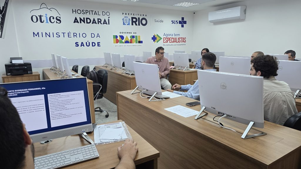Na manhã desta terça-feira, 14 de abril de 2026, no Laboratório de Informática da OTICS Andaraí, aconteceu a sessão semanal do serviço do Programa de Residência da Neurocirurgia e Staffs. Durante o encontro, discutiram detalhadamente sobre casos clínicos e estratégias de abordagem cirúrgica. Estiveram presentes 8 pessoas.