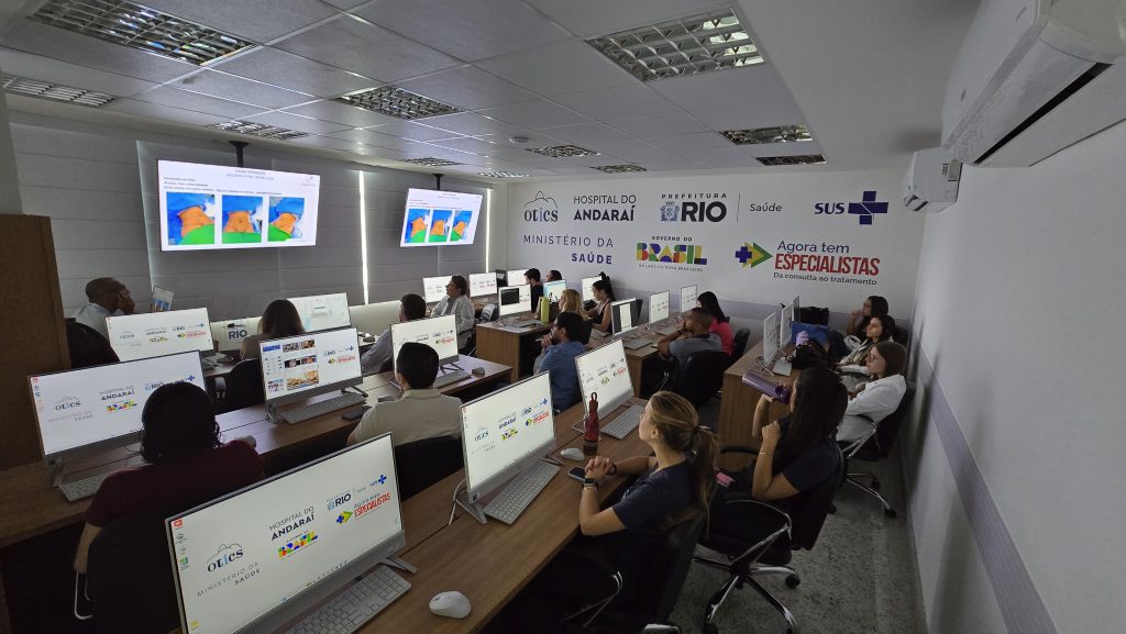 Na manhã desta quarta-feira, 15 de abril de 2026, no laboratório de Informática da Estação OTICS Andaraí, houve uma reunião com o médico Orido Pinheiro, chefe da cirurgia plástica, residentes e estagiários do serviço da plástica. No encontro, apresentaram casos selecionados para discussão, referentes a pacientes operados. Estiveram presentes 18 pessoas.