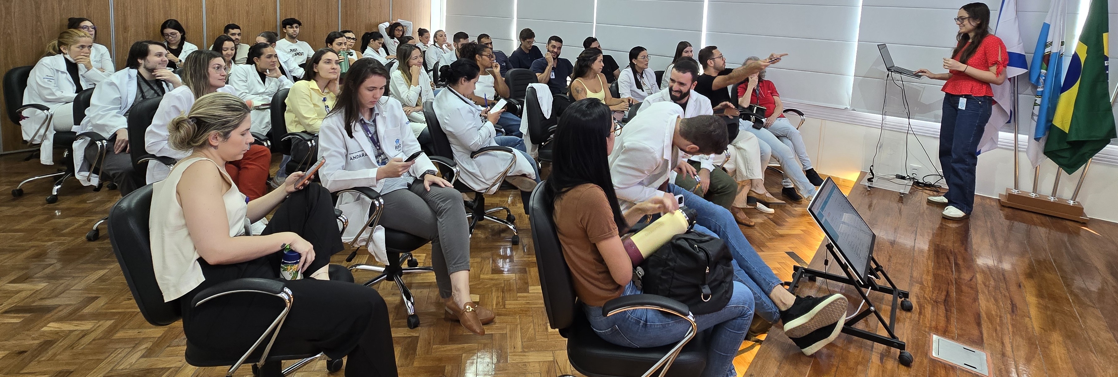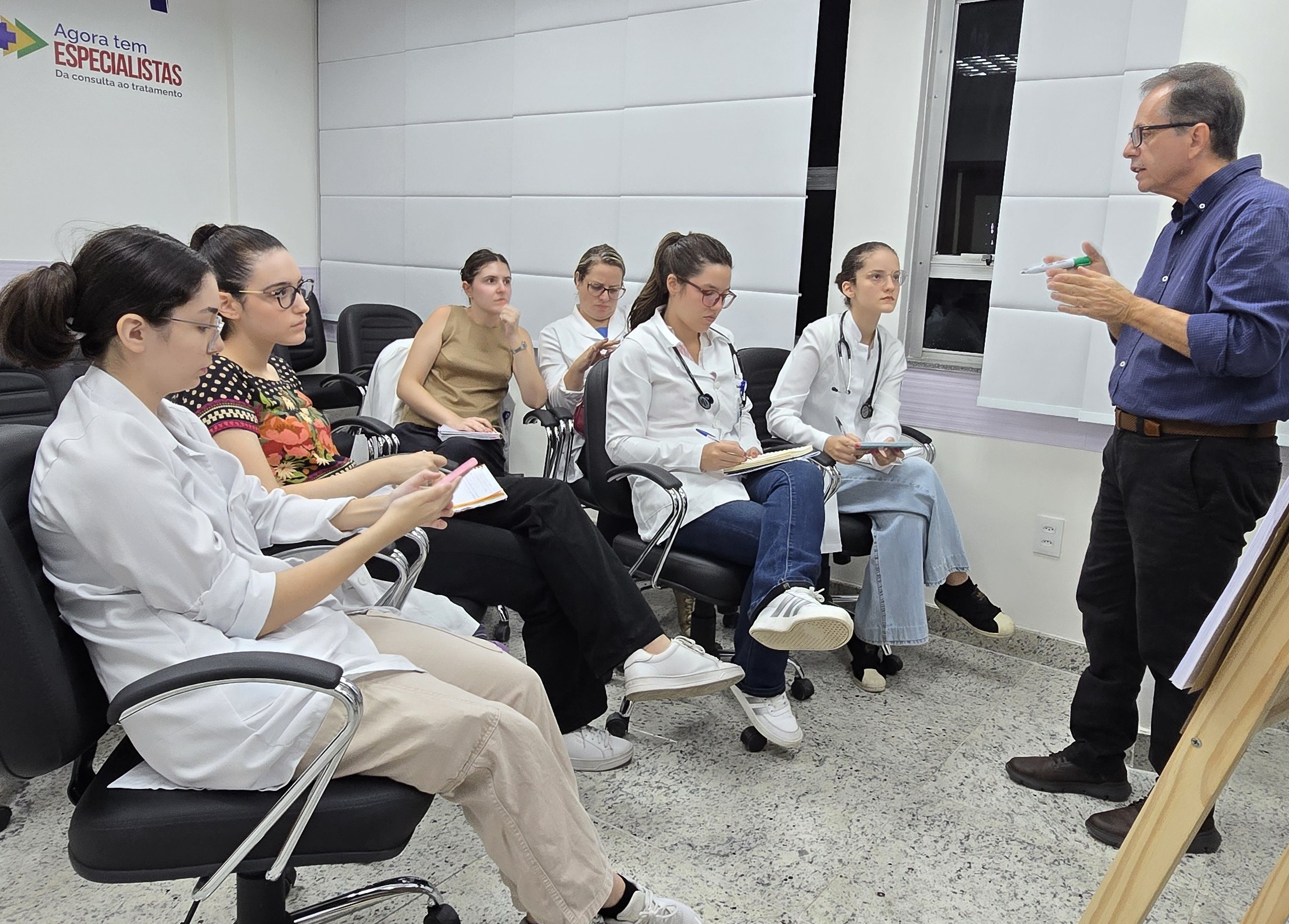 Na manhã desta quarta-feira, 25 de março de 2026, a médica Viviane Castro realizou um encontro com internos de medicina para apresentar uma aula teórica